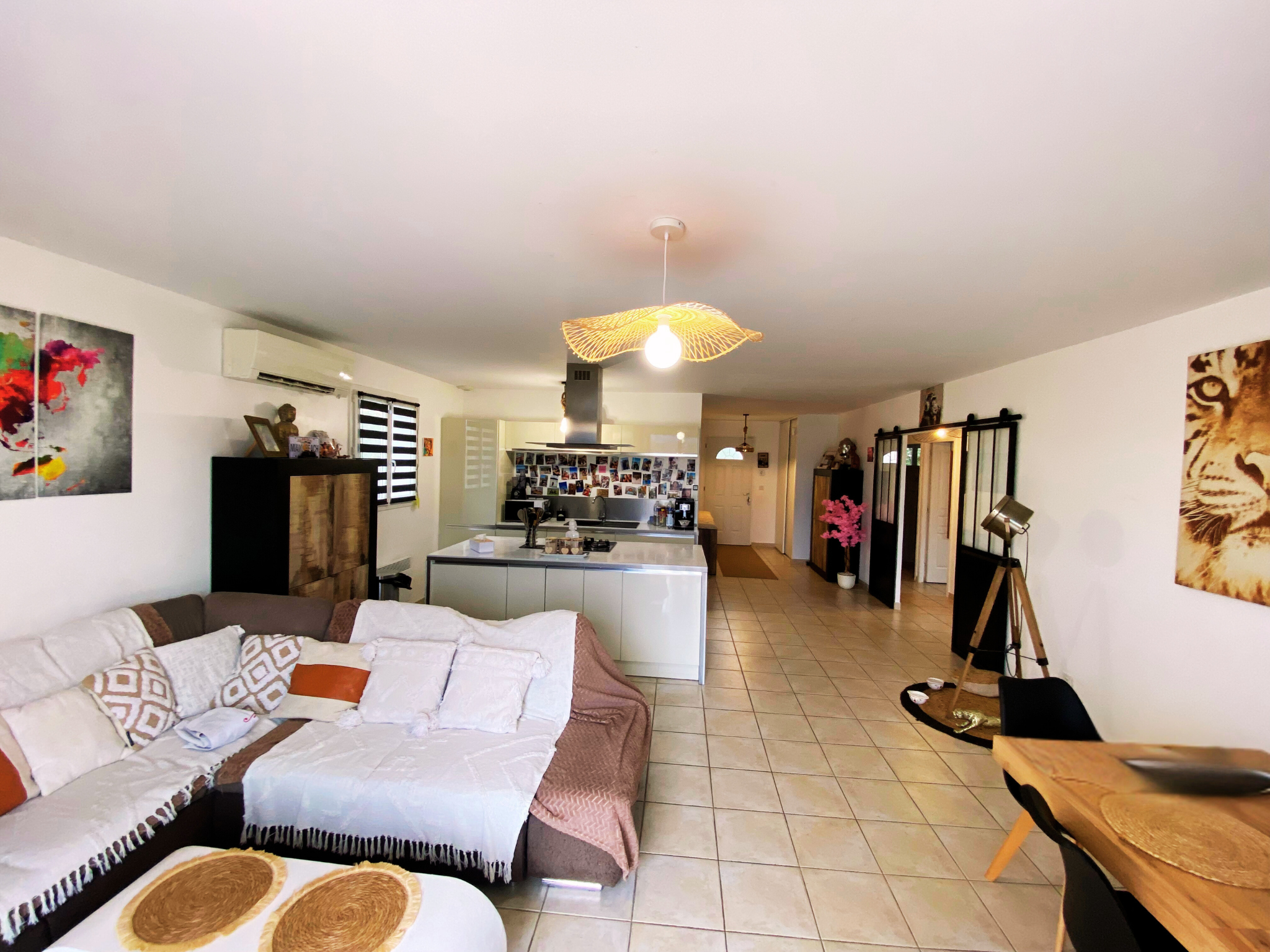 Située dans un quartier résidentiel calme de Puichéric, cette maison construite en 2012, de plain-pied et sur quatre faces, offre un cadre de vie rare, alliant le confort d'un environnement résidentiel aux avantages d'une véritable vie à la campagne, avec un arrière de propriété totalement dégagé sur un immense terrain et une vue imprenable sur le massif de l'Alaric. Implantée sur une parcelle de 12 421 m2, la propriété bénéficie d'un terrain exceptionnel par sa superficie. Une grande partie est aujourd'hui non constructible, mais pourrait évoluer sur demande, ce qui ouvre de réelles perspectives pour des projets futurs. Cet espace offre une sensation d'ouverture, de liberté et de tranquillité très recherchée, tout en restant dans un cadre habité et sécurisé. La maison développe environ 120 m2 habitables et propose une distribution fonctionnelle et moderne. L'entrée dispose d'un placard intégré et s'ouvre sur une pièce de vie lumineuse avec cuisine ouverte entièrement aménagée et équipée, comprenant un îlot central, une hotte plafond, un réfrigérateur, un four et un lave-vaisselle intégrés. L'espace nuit est intelligemment séparé par une porte coulissante, garantissant calme et intimité. La partie nuit comprend quatre chambres avec placards, dont une suite parentale avec coin douche, lavabo et volet roulant électrique. Les trois autres chambres sont idéalement orientées (nord, est et sud) et disposent chacune de rangements intégrés. Une salle de bain avec fenêtre et VMC, un WC indépendant avec fenêtre et VMC ainsi qu'un espace buanderie avec WC sanibroyeur complètent l'ensemble. La maison est équipée de climatisation réversible avec pompe à chaleur, d'un chauffe-eau thermodynamique, d'une VMC double flux et d'une alarme Verisure, offrant un excellent niveau de confort et de performance énergétique. La taxe foncière est modérée pour ce type de bien et de surface, à 1 316 EUR par an. À l'extérieur, le terrain est entièrement clôturé et dispose d'un portail pour un accès véhicule par le fond de la parcelle. Une pergola couverte réalisée par un ferronnier avec bar, une terrasse en béton imprimé, un city stade, ainsi qu'une piscine hors sol semi-enterrée équipée d'un robot, d'une pompe et d'un programmateur viennent enrichir les prestations. L'environnement est particulièrement agréable, avec une vue dégagée sur l'Alaric et aucune construction à l'arrière, donnant une vraie sensation de campagne tout en restant dans un secteur résidentiel. Le stationnement est aisé, avec des places disponibles sur la propriété et dans la rue. Cette maison est idéale pour une famille recherchant l'espace, la tranquillité, la vue, un grand terrain et le confort moderne, dans un village du Minervois, tout en profitant d'un environnement naturel privilégié et des commodités à proximité. Elle n'est pas concernée par la zone inondable. Cette annonce vous est proposée par BOUBA BARBARA IMMO - EI - NoRSAC: 890009269, Enregistré à Greffe du tribunal de commerce de CARCASSONNE Les informations sur les risques auxquels ce bien est exposé sont disponibles sur le site Géorisques : www.georisques.gouv.fr - Annonce rédigée et publiée par un Agent Mandataire -